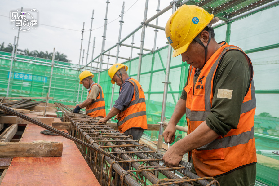 2024年5月13日,海南临空航空特货“超级运营人”项目工人正在施工。